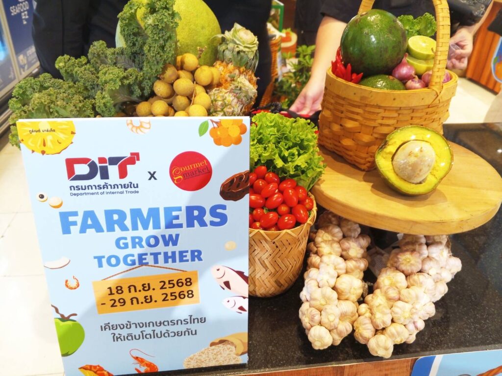 กรมการค้าภายใน (DIT) ร่วมกับ กูร์เมต์มาร์เก็ต จัดงาน “DIT X Gourmet Market Farmers Grow Together” เคียงข้างเกษตรกรไทยไปด้วยกัน จัดขึ้นตั้งแต่วันที่ 18 – 29 กันยายน 2568 ณ กูร์เมต์ มาร์เก็ต ชั้น G สาขาพารากอน เพื่อเป็นพื้นที่สนับสนุนเกษตรกรไทยให้มีช่องทางการจำหน่ายสินค้าคุณภาพได้โดยตรงถึงมือผู้บริโภค และเพื่อนำไปต่อยอดพัฒนาสินค้า