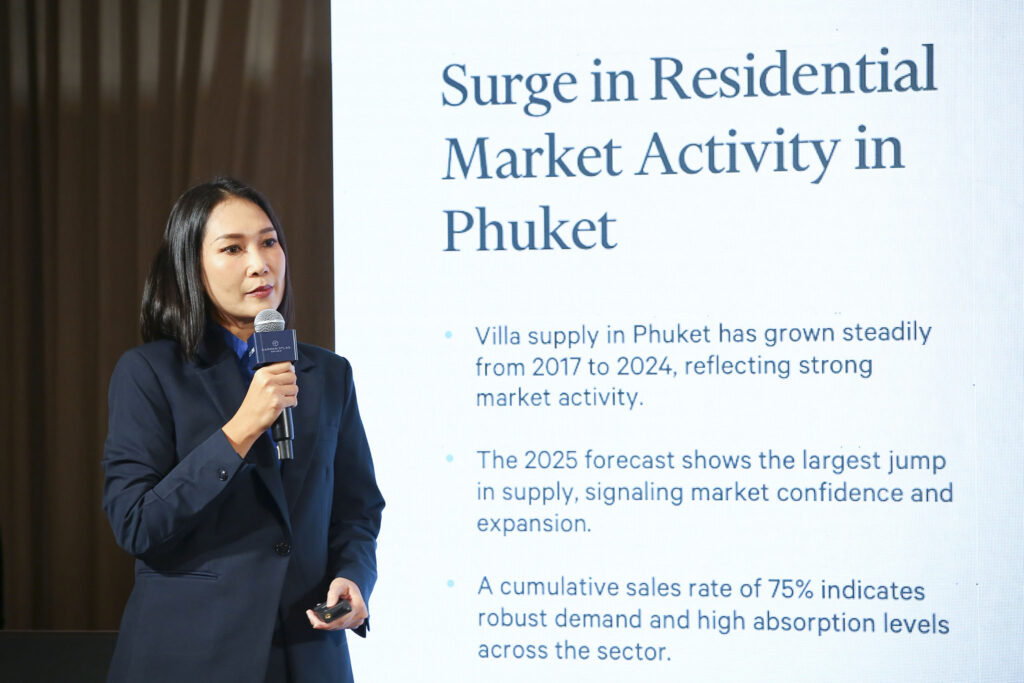 ด้านนางสาวประกายเพชร มีชูสาร หัวหน้าแผนกซื้อขายอสังหาริมทรัพย์ภูเก็ต ซีบีอาร์อี ประเทศไทย กล่าวว่า ตลาดที่พักอาศัยตากอากาศประเภทวิลล่ามีการเติบโตขึ้นอย่างต่อเนื่อง โดยพบว่าปี 2567 มียอดขายเพิ่มขึ้น 23% จากปีก่อนหน้า ซึ่งต้องถือว่ามีการเติบโตอย่างต่อเนื่องตลอด 3 ปีที่ผ่านมา หากพิจารณาโครงการระดับลักซ์ชัวรี่ที่มีมูลค่ามากกว่าหลังละ 90 ล้านขึ้นไป ซัพพลายในตลาดมีเพียง 6.89% ซึ่งมียอดขายแล้วกว่า 76% โดยทำเลที่ได้รับความนิยมสูงที่สุดคือทำเลชายฝั่งตะวันออก (ทิศใต้) สามารถทำยอดขายได้สูงที่สุดถึง 92.8% เหตุผลที่ทำเลนี้ได้รับความสนใจอย่างมากสำหรับตลาดลักซ์ชัวรี่นี้คือ ทัศนียภาพอันงดงามของวิวทะเล ที่เรียงรายด้วยเกาะแก่งต่างๆ ทำให้วิวที่อยู่เบื้องหน้างดงาม อีกทั้งยังเห็นเรือสำราญจอดเทียบท่า จึงทำให้ภาพทิวทัศน์เปลี่ยนไปทุกวัน ทำให้ทำเลนี้เป็นทำเลศักยภาพ ที่สามารถดึงดูดนักลงทุนและผู้ซื้อระดับบนจากทั่วโลกที่ต้องการไลฟ์สไตล์ที่เหนือระดับ พร้อมการลงทุนที่คุ้มค่าในระยะยาว ให้เข้ามาจับจองวิลล่าหรู