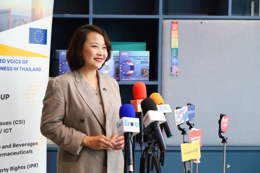 ภายในงานสัมมนาซึ่งนำโดย นางสาวภาวิณี บุนยะมิศร์ ประธานคณะทำงานด้านการคุ้มครองทรัพย์สินทางปัญญา สมาคมการค้ายูโรเปียนเพื่อธุรกิจและการพาณิชย์ (EABC) พร้อมด้วยผู้เชี่ยวชาญจาก SEA IP SME Helpdesk, กรมศุลกากร, กองบังคับการปราบปรามการกระทำความผิดเกี่ยวกับอาชญากรรมทางเศรษฐกิจ (บก.ปอศ.), กองป้องปรามการละเมิดทรัพย์สินทางปัญญา กรมทรัพย์สินทางปัญญา, และผู้แทนจากแพลตฟอร์มอีคอมเมิร์ซชั้นนำอย่าง Lazada และ Alibaba ร่วมสะท้อนภาพรวมภูมิทัศน์การบังคับใช้กฎหมายทรัพย์สินทางปัญญาและการปราบปรามสินค้าผิดกฎหมายในประเทศไทย และแลกเปลี่ยนแนวปฏิบัติที่ดีจากยุโรปและอาเซียน รวมถึงบทบาทภาคธุรกิจในการร่วมมือกับภาครัฐเพื่อส่งเสริมการป้องกันและปราบปรามการค้าผิดกฎหมาย พร้อมเผยแพร่เอกสารเปิดผนึก “ข้อเสนอ เพื่อการแก้ไขและจัดการปัญหาการค้าผิดกฎหมายในประเทศไทย” ซึ่งจัดทำโดย EABC ระบุถึงสถานการณ์การค้าผิดกฎหมาย ผลกระทบ และข้อเสนอแนะแนวทางแก้ไข ภายใต้การบูรณาการความร่วมมือระหว่างผู้มีส่วนได้ส่วนเสีย ส่งเสริมให้ผู้ประกอบการในทุกระดับและจากทุกประเทศ โดยเฉพาะระดับวิสาหกิจขนาดกลางและขนาดย่อมให้ได้รับการคุ้มครองด้านทรัพย์สินทางปัญญาและจากการค้าสินค้าผิดกฎหมาย การยกระดับกฎระเบียบให้สอดคล้องกับมาตรฐานสากล เพิ่มความสามารถในการแข่งขันและความมั่นคงทางเศรษฐกิจของประเทศไทยในระยะยาว สอดรับยุทธศาสตร์ชาติ
