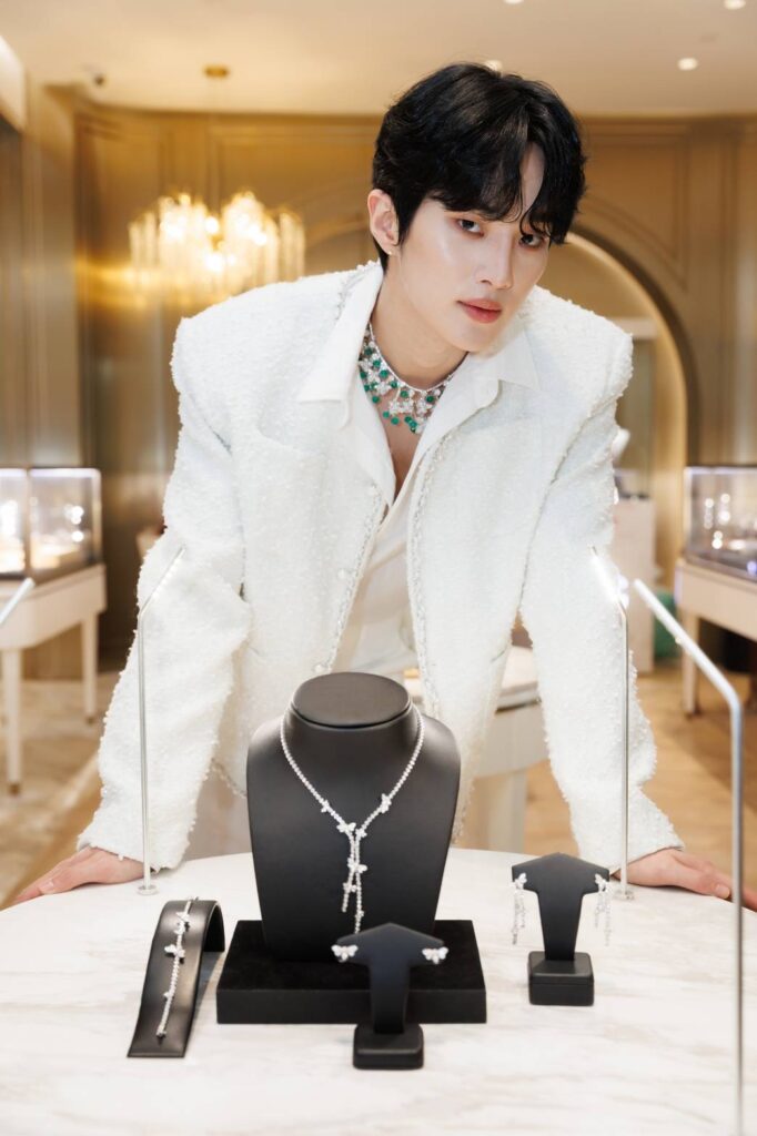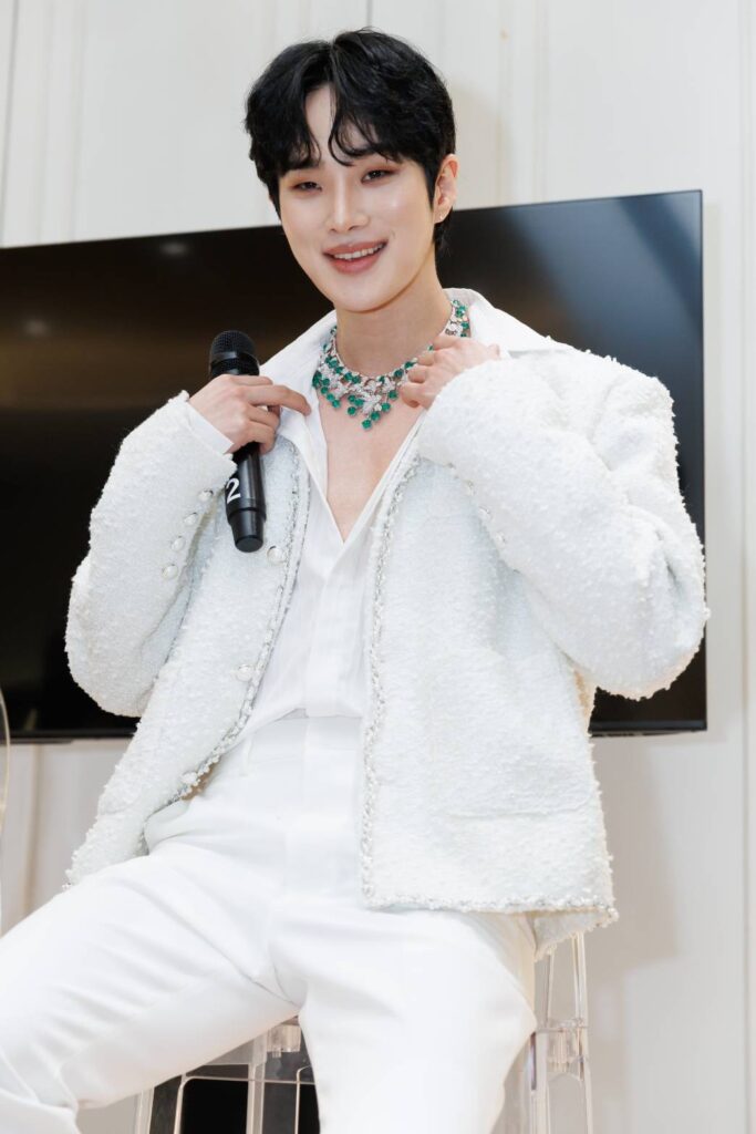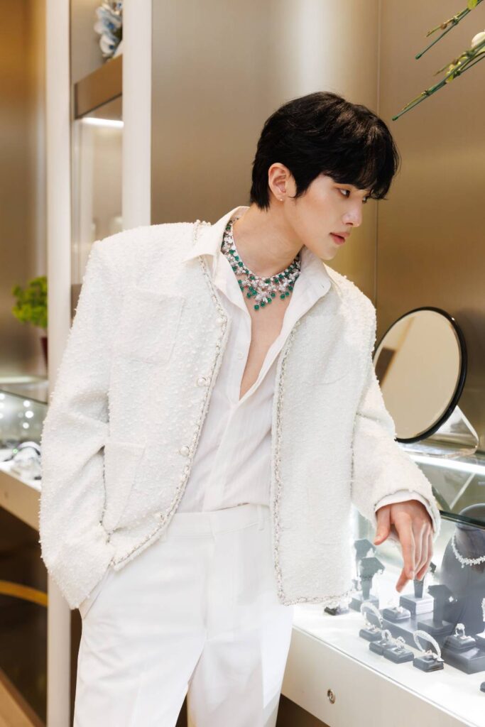 งานนี้นักแสดงและนักร้องหนุ่มสัญชาติเกาหลีขวัญใจสาวๆ เสริมทัพบิวตี้เจมส์ เปิดตัวคอลเลคชั่นเครื่องประดับแห่งความอบอุ่นและเป็นมงคล “Maison Abeille” รังสรรค์มรกตหลากเม็ดที่เรียงร้อยอย่างประณีต สะท้อนแรงบันดาลใจจากโครงสร้างอันสมบูรณ์แบบของรังผึ้ง ตัวผึ้งประดับเพชรบริสุทธิ์เปล่งประกายอย่างสง่างามเหนือองค์ประกอบที่สมดุล นิยามแห่งความประณีตและคุณค่าที่คงอยู่เหนือกาลเวลา ซึ่งถูกรังสรรค์ออกแบบผ่านฝีมือดีไซเนอร์ไทยอย่างประณีตจนได้ออกมาเป็นชิ้นงานที่ทรงคุณค่า เป็นตัวแทนในการส่งมอบความสุข คำอวยพร และความโชคดีให้แก่ทั้งผู้ให้และผู้รับ