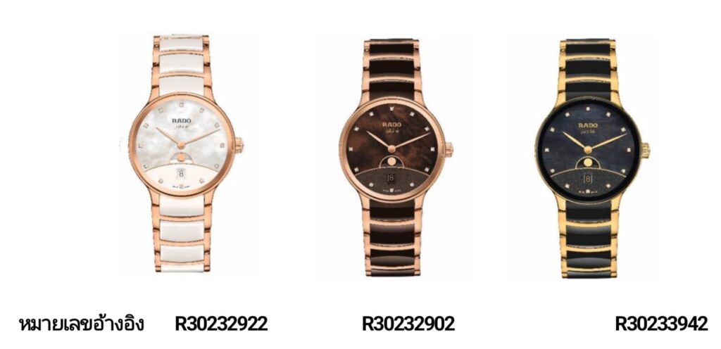 พร้อมกันนี้ Rado ยังเปิดตัว Centrix Moonphase อีกสามรุ่นในโทนสีที่แตกต่าง ได้แก่ สีน้ำตาล สีดำ และสีขาว เพื่อสะท้อนความสัมพันธ์อันกลมกลืนระหว่างโลกและดวงจันทร์ที่โคจรอย่างสง่างามเหนือเส้นขอบฟ้า โดดเด่นด้วยหน้าปัดเปลือกหอยมุกที่เปี่ยมด้วยความสง่างามเหนือระดับ โดยนาฬิกาทั้งสามรุ่นนี้ไม่ได้จำกัดจำนวนการผลิต