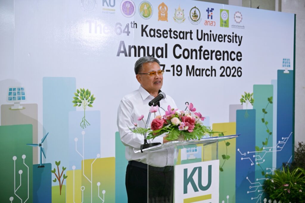 ดร.ดำรงค์ ศรีพระราม รักษาการแทนอธิการบดีมหาวิทยาลัยเกษตรศาสตร์ ให้เกียรติเป็นประธานเปิดงานการประชุมทางวิชาการครั้งที่ 64 ภายใต้แนวคิด “บูรณาการนวัตกรรมและสังคม: ก้าวสู่อนาคตที่ชาญฉลาดและยั่งยืน” (Bridging Innovation and Society: Toward a Smart and Sustainable Future) วันที่ 17 มีนาคม 2569 ณ ห้องประชุมสุธรรม อารีกุล อาคารสารนิเทศ 50 ปี มหาวิทยาลัยเกษตรศาสตร์